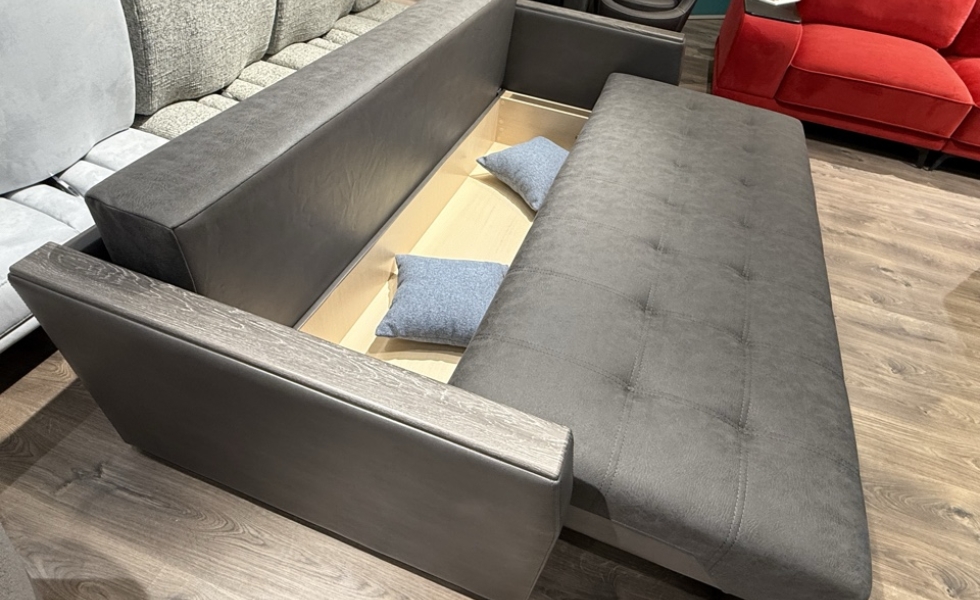 Диван с механизмом Еврокнижка-пантограф. Ничего лишнего, при этом сохранён функционал! Подлокотники по 12 см с накладками МДФ сверху, позволяют насладиться чашечкой чая или кофе, грамотная посадка дает поддержку пояснице, ортопедический наполнитель распределяет нагрузку. Вместительные ящики под спальным местом, будут вместительным местом хранения! И всё это вкупе, даёт эффект - "Вот он, тот самый диван!-кровать".